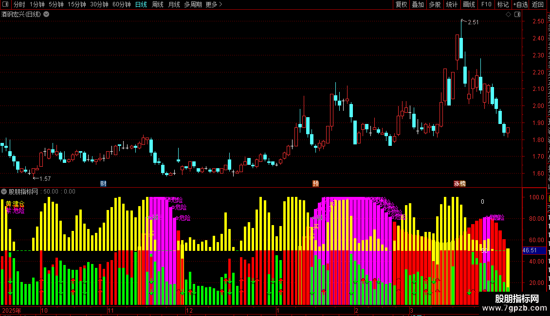 DRAWTEXT(买入条件, 控盘度归一, '←买'), COLOR00FFFF;