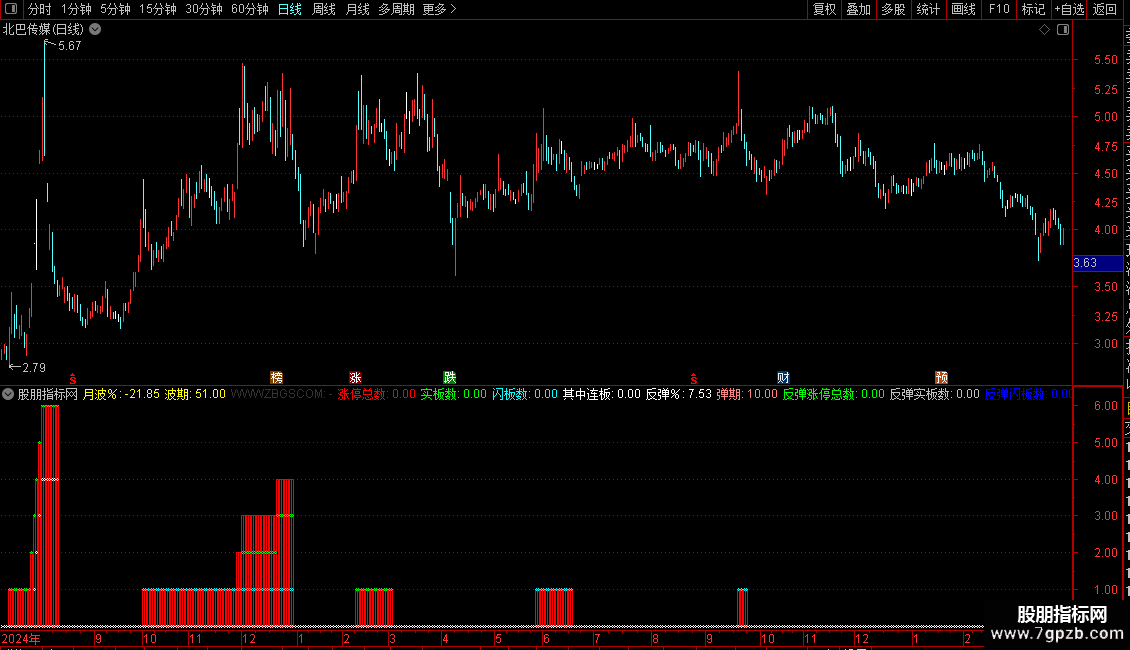 其中反弹连板:IF(弹期>0,弹连板,0),CIRCLEDOT,COLORWHITE;