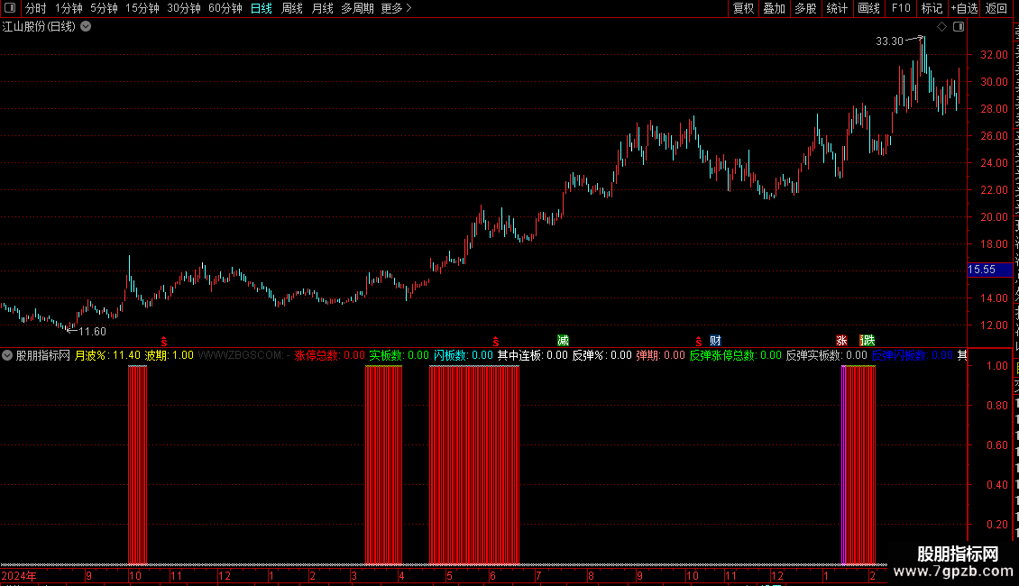 其中连板:IF(波向=0,0,IF(波期>0,连板,0)),CIRCLEDOT,COLORWHITE;