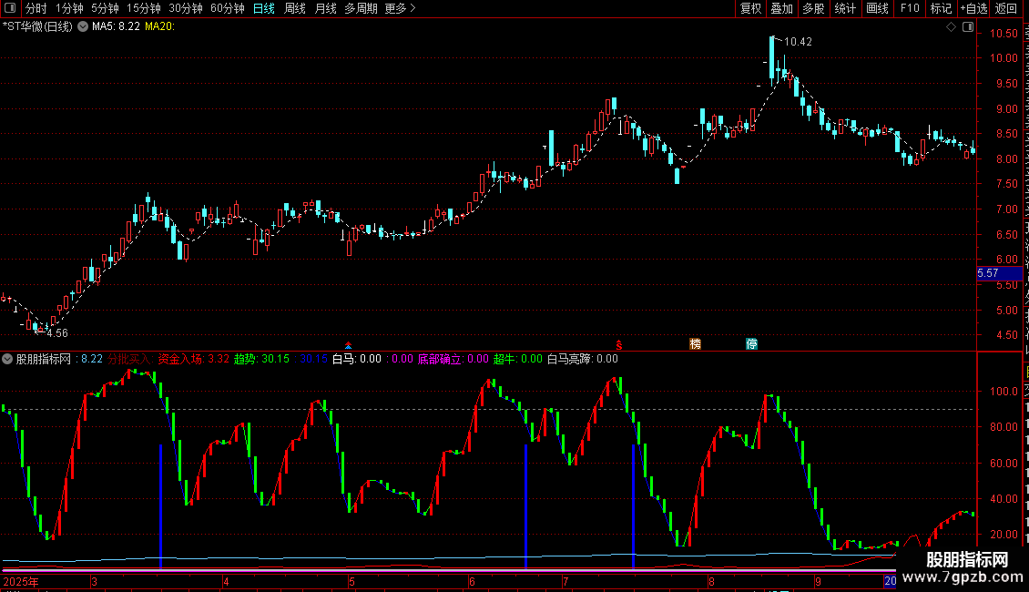 副图公式通过多周期SMA、RSI、动力线等指标构建趋势与波段系统,如“分批买入/卖出”信号、底部确立标识,辅助判断中短期趋势转折。
