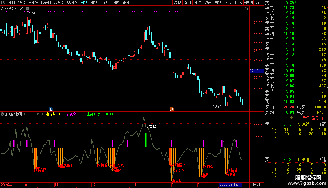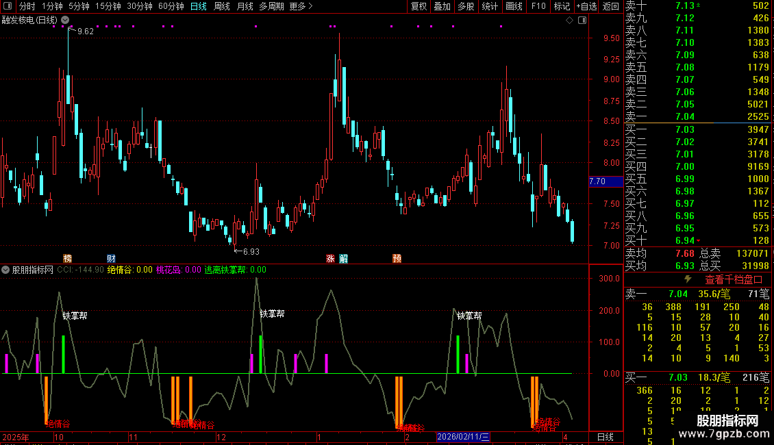 DRAWTEXT(逃离铁掌帮,CCI,'铁掌帮'),COLORFFFFFF;
