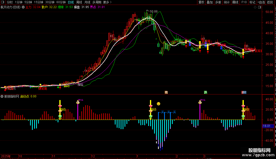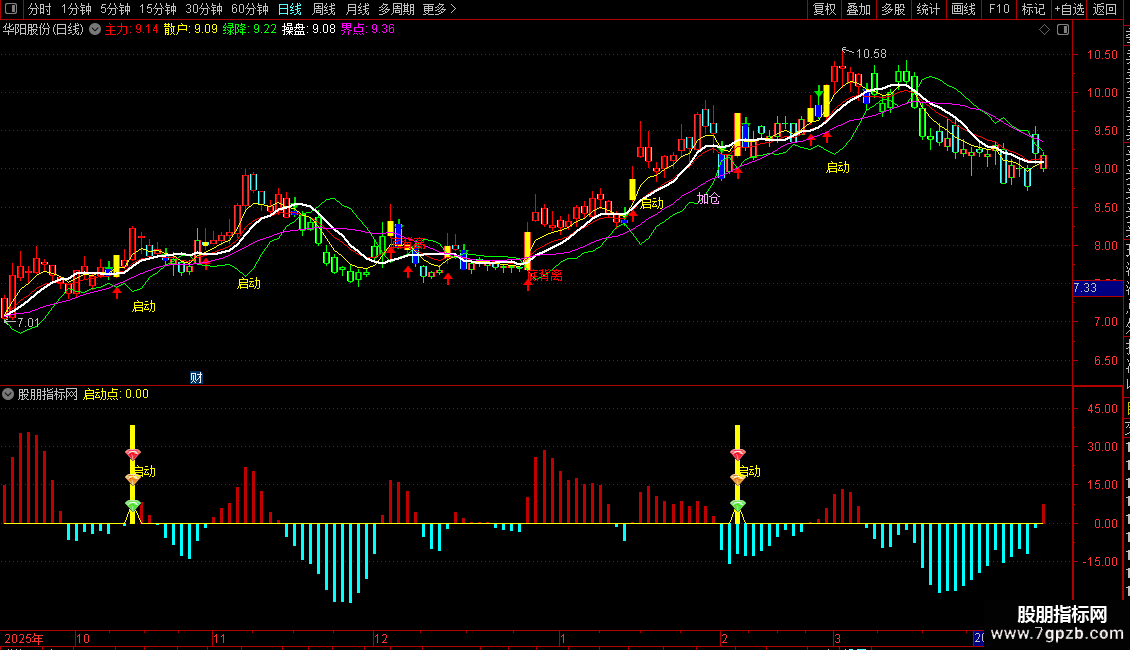 启动信号:当出现黄色“启动”图标时,表示股价放量突破,趋势可能反转向上,是右侧交易的确认点。