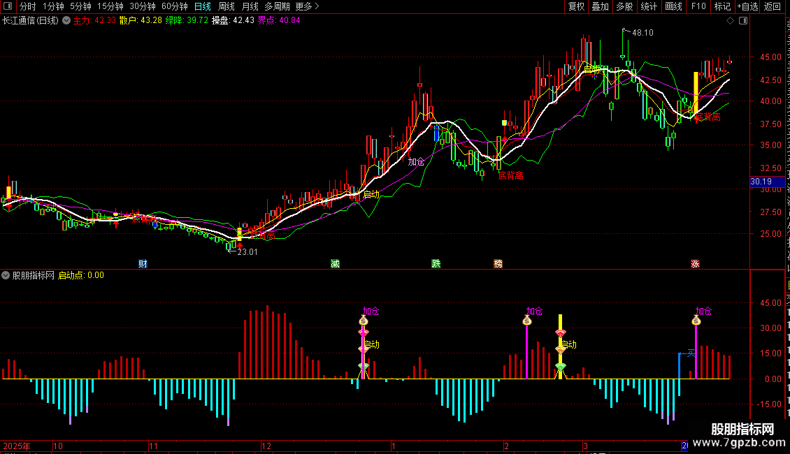 在出现“←买”信号时可尝试性建仓。当“启动”信号出现时,是更安全的入场时机。后续出现“加仓”信号可顺势而为。