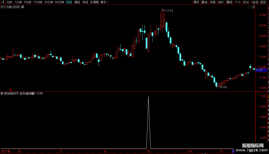 VARG14:=COUNT(CLOSE/REF(CLOSE,1)>1.095,7)>=1;