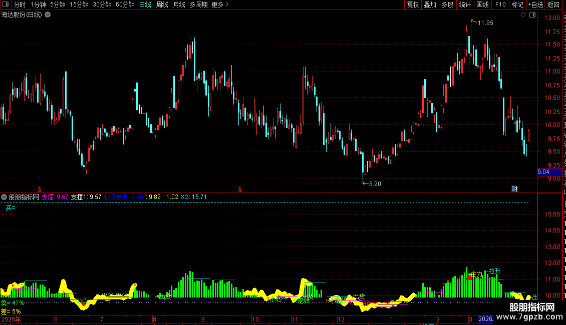 均价:=SUM(C*V,240)/SUM(V,240),COLORYELLOW,LINETHICK1;