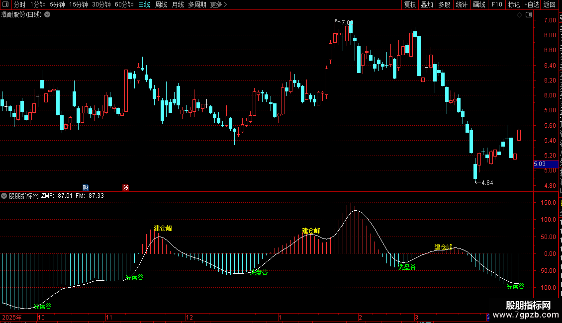 DRAWTEXT(t6,zmf+3,'建仓峰'),coloryellow;