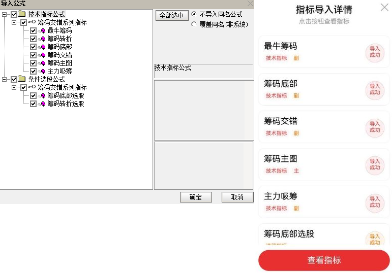 通达信【筹码交错】1主5副2选股捕捉筹码底部转折介入时机源码