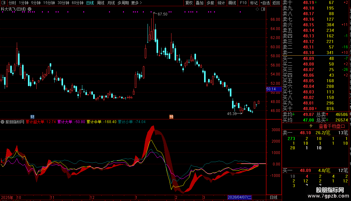 核心看盘重点是超大单 + 大单的累计曲线方向,以及当日变动柱的增减幅度;