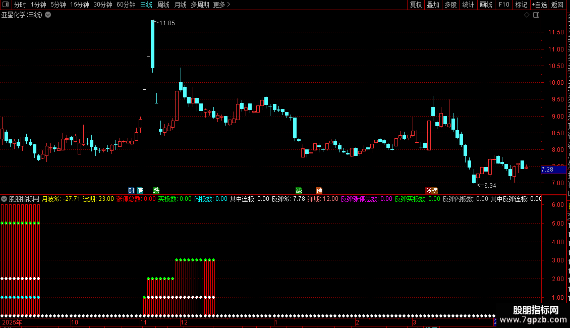 其中反弹连板:IF(弹期>0,弹连板,0),CIRCLEDOT,COLORWHITE;