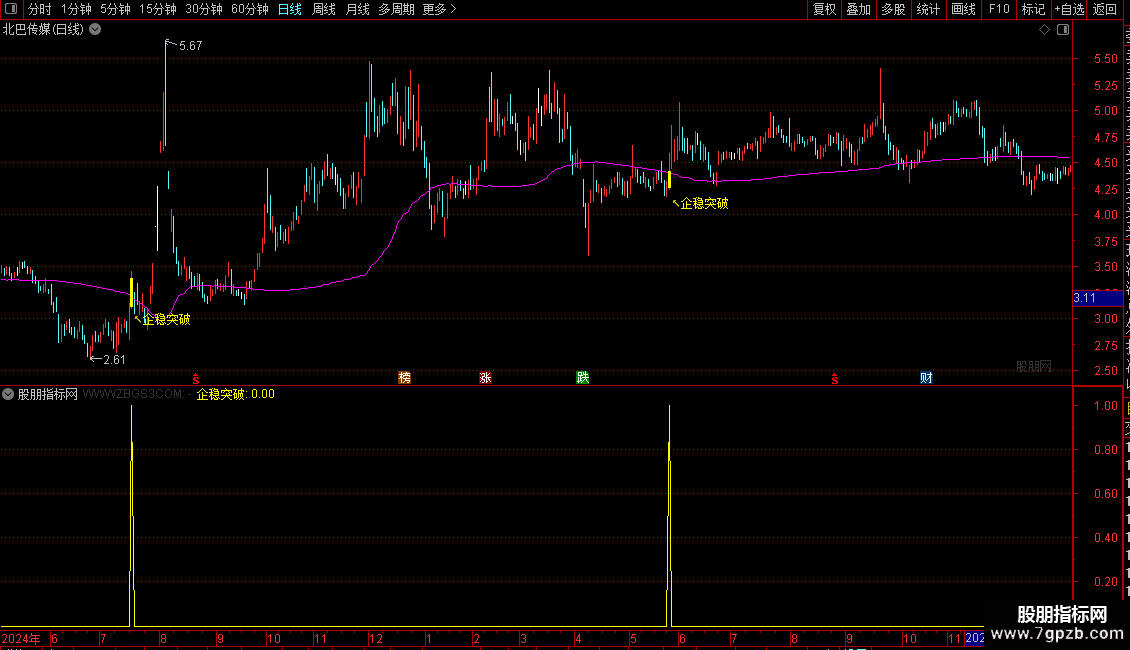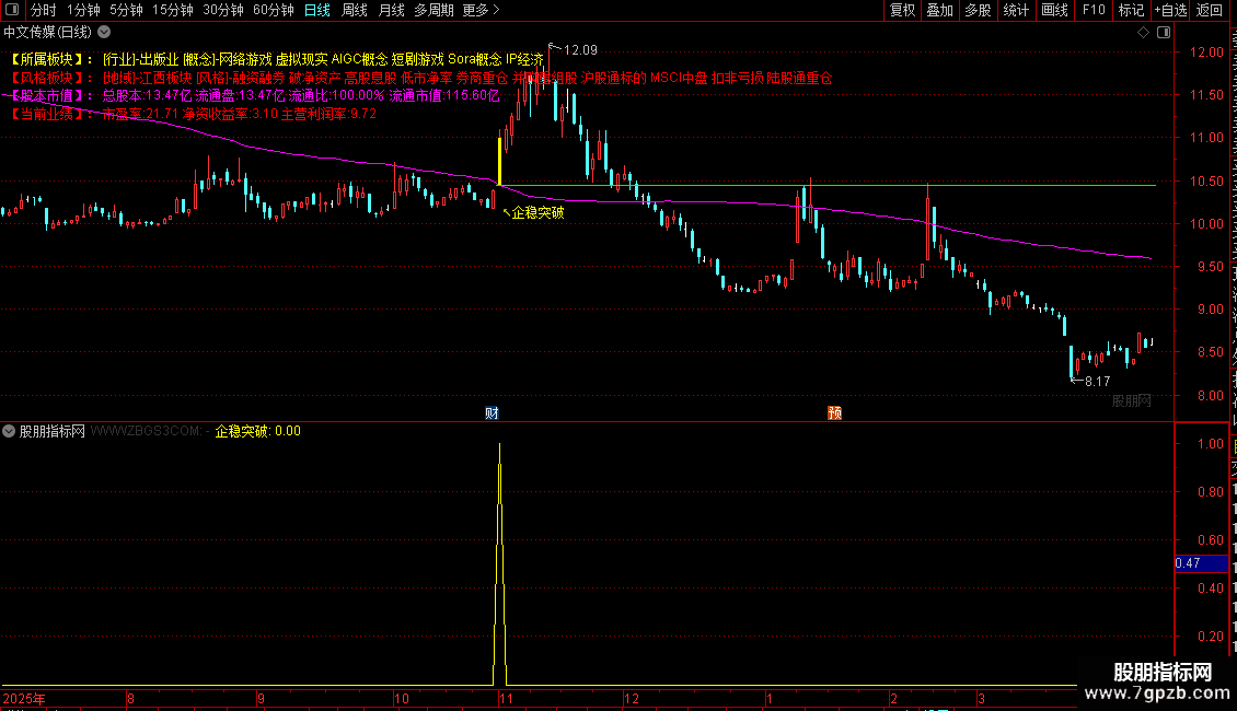 DRAWTEXT_FIX(ISLASTBAR,0.005,0.12,0,股本市值),COLORMAGENTA;
