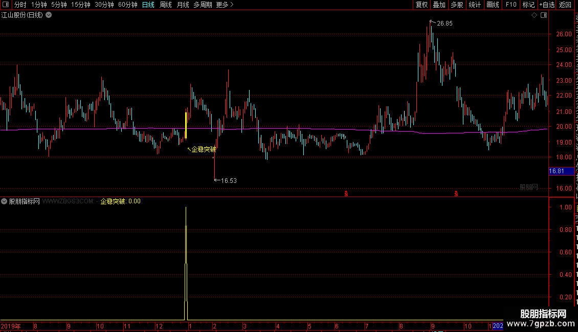 自定义技术指标,主要用于在K线图上显示股票的综合信息和交易信号。