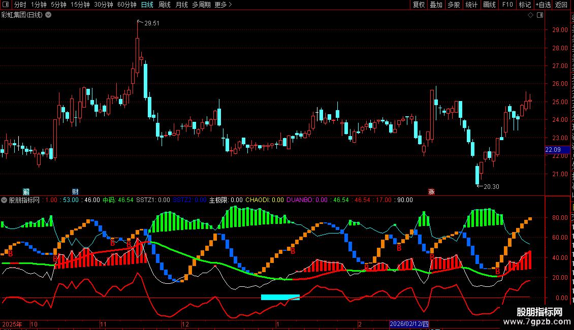 主极限:IF(ZBGS6>=0&&QUHISZB< 13,1,0),LINETHICK0,COLORFF00FF;