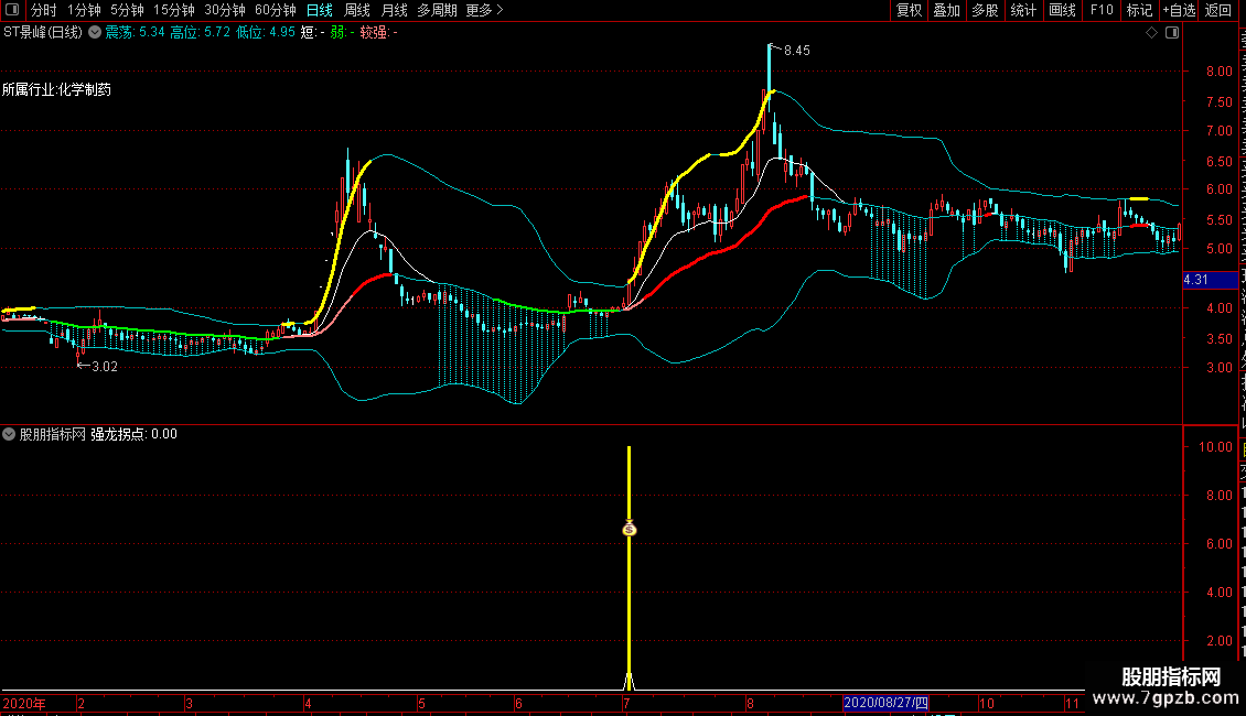 STICKLINE(强龙拐点,0,10,2,0),COLORYELLOW;