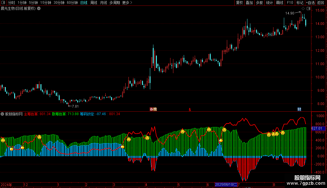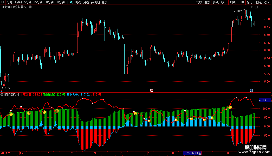 DRAWICON(CROSS(主筹估算,散筹估算),散筹估算,5);{笑脸}