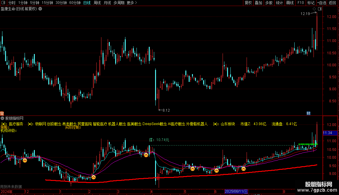 加仓线:EMA(持股线,10),LINETHICK1,COLORRED;