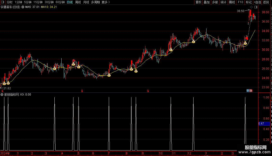 通过一个评分系统,筛选同时满足多个强势特征的股票。这些特征包括:股价处于短期上升趋势、中期有一定涨幅、股性活跃(如换手率高、波动大),并且MACD指标也处于多头状态。当一只股票累积的“强势分”达到要求时,就会发出信号。