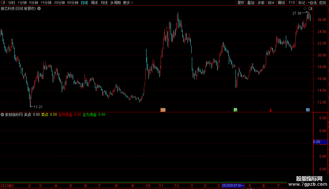 2. 资金监控:包含“拉升资金”和“主力资金”两条线,用于监测不同周期下市场资金的活跃程度和主力动向。