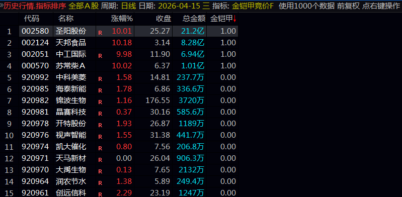 通达信【金铠甲】竞价排序/选股开盘前锁定主力资金抢筹强势股源码