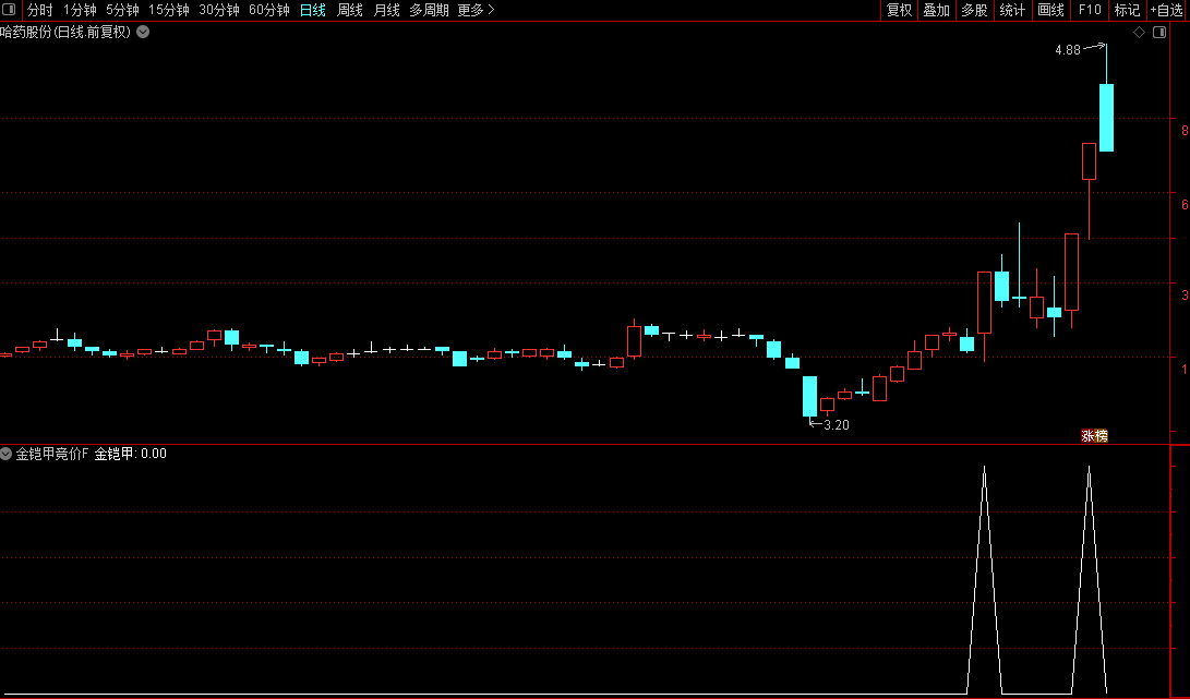 执行选股:每个交易日9:25集合竞价结束后 输入.401按"金铠甲"值排序, 直接选股或者排序均可。