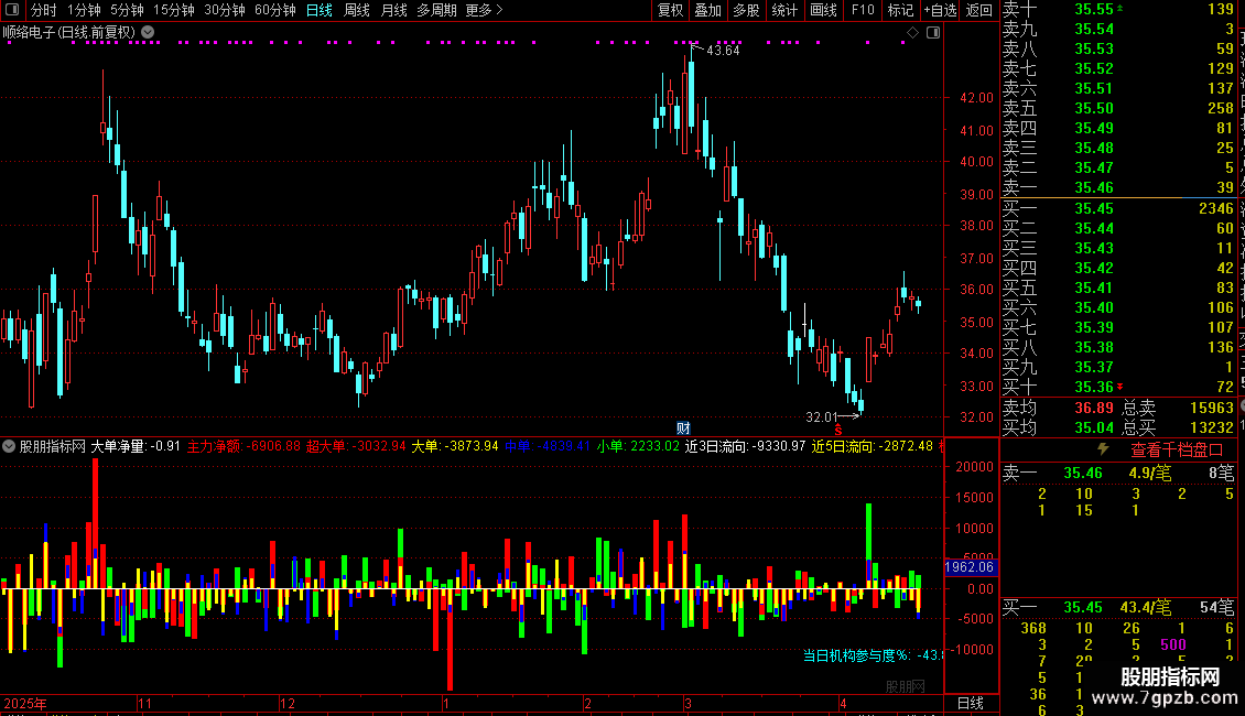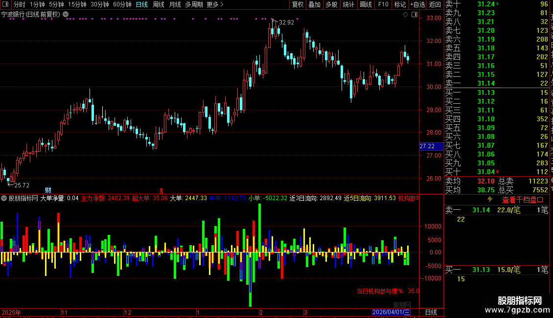 『超大中小资金流F』主力净额+超大单+N日资金流向+机构参与度!