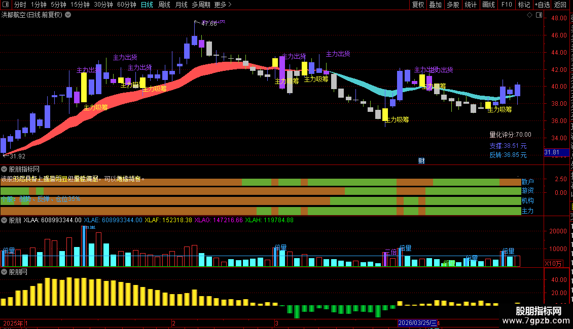 给出操作建议:综合个股与大盘的趋势、量能状况,直接在图上显示文字提示,如“强势、上涨”或“弱势、整理”,并给出建议的仓位比例。