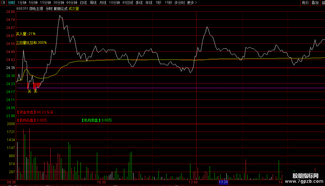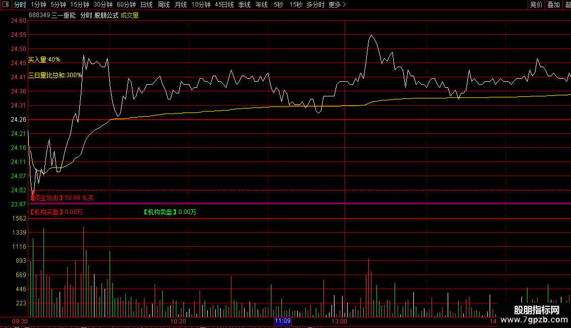 DRAWTEXT_FIX(1,0.0,1-0.05,0,STRCAT(STRCAT('【机构买盘】',CON2STR(INST_BUY,2)),'万')),COLORRED;