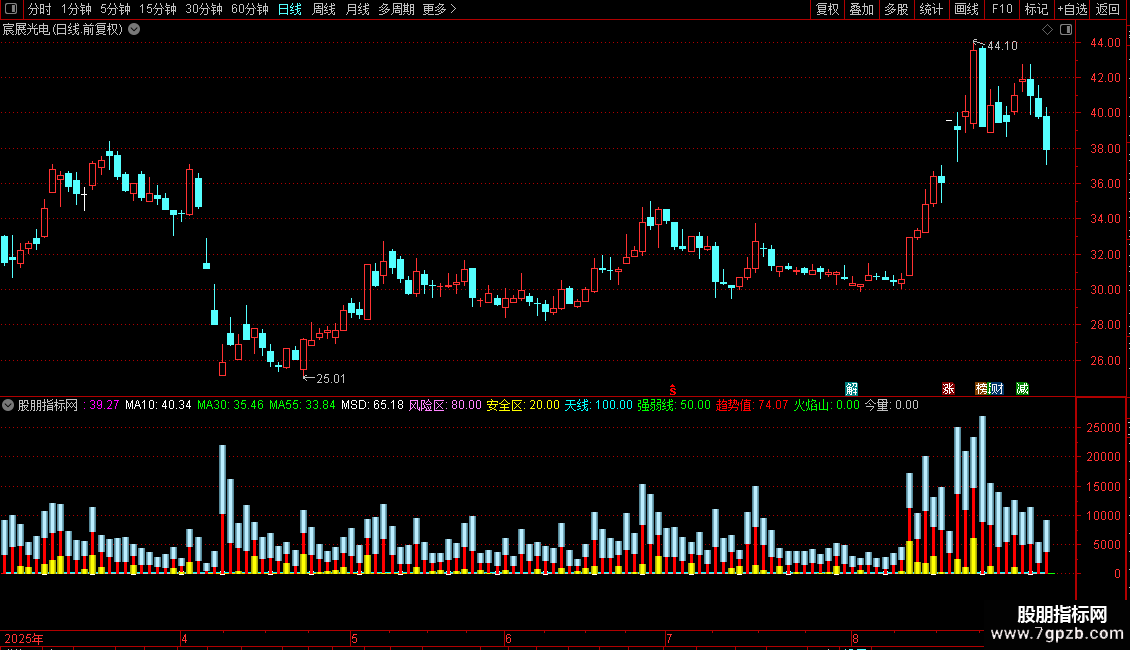 5. 火焰山指标:显示火焰山柱状线,用于判断底部区域。