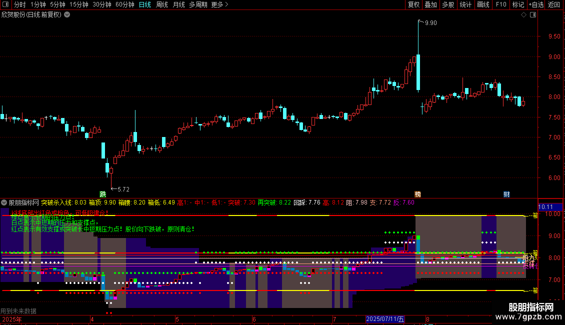 DRAWTEXT(CURRBARSCOUNT=1 AND 支撑618%,支撑618%,'命运转折线'),COLORRED;