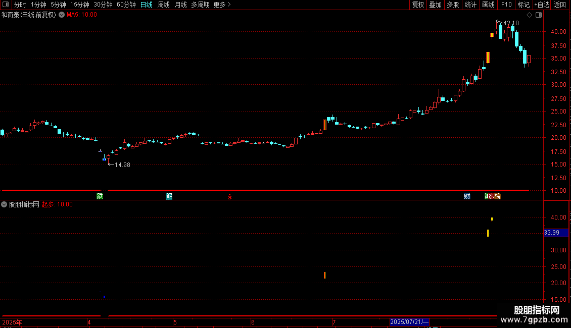 使用法:直接加载到副图或主图,观察红色粗线出现时机,结合涨跌停标记判断极端行情。