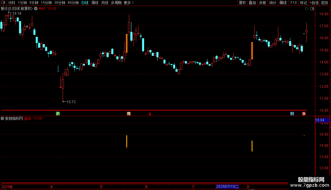 起步:IF((RS1 >MA(C,10)),10,DRAWNULL),,COLORRED,LINETHICK2;
