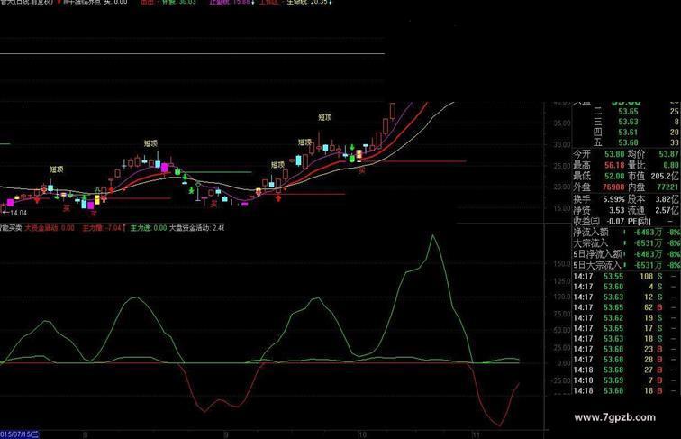 输出主力进: 如果VAR4>=0,返回VAR4,否则返回0,画绿色
