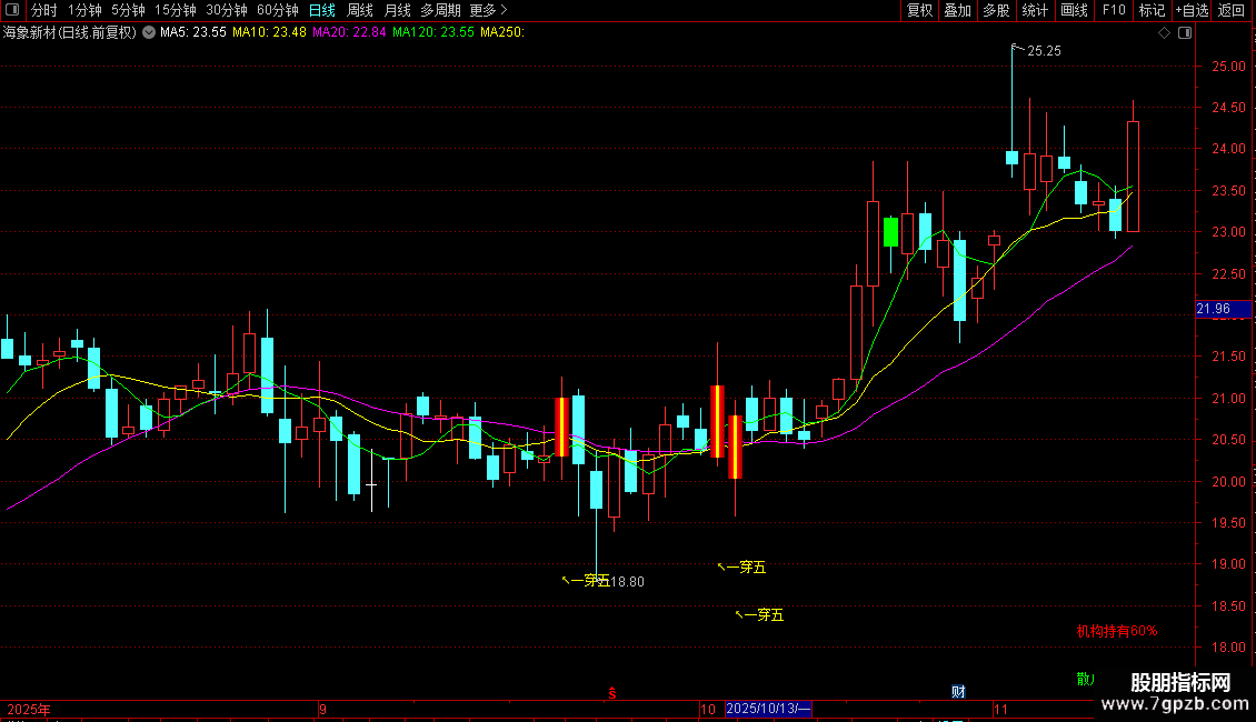 DRAWTEXT(选股,L*0.94,'↖一穿五'),COLORYELLOW;