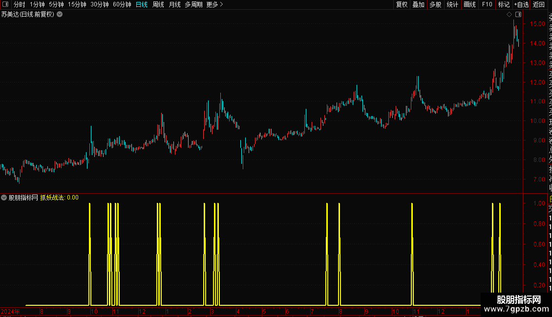 本指标综合了三个选股指标作出,属于强势股追涨指标,还未经过实战检验,请先熟悉后再使用;小心求证,谨慎使用