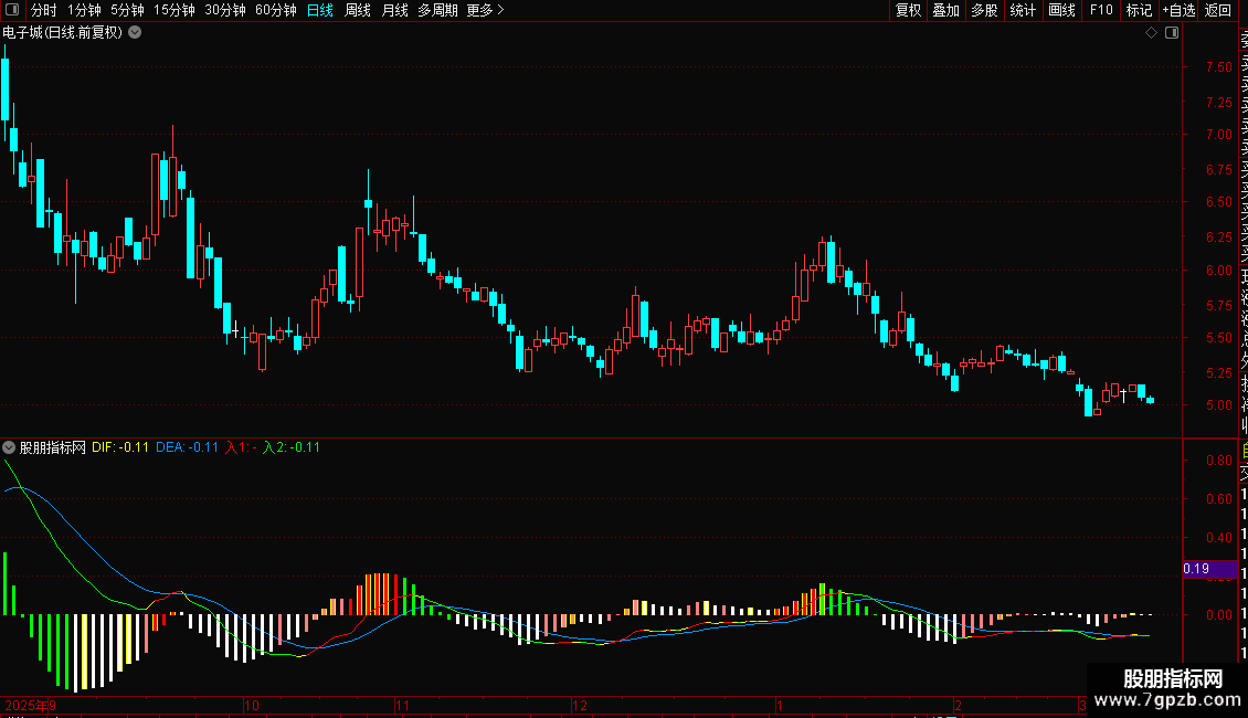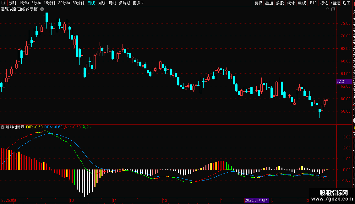 STICKLINE(落,0,MACD,1,0),COLORWHITE;