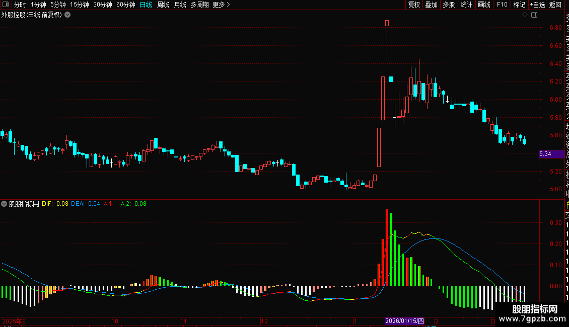 入2:IF(DIF<REF(DIF,1),DIF,DRAWNULL),COLOR00FF00,LINETHICK1;