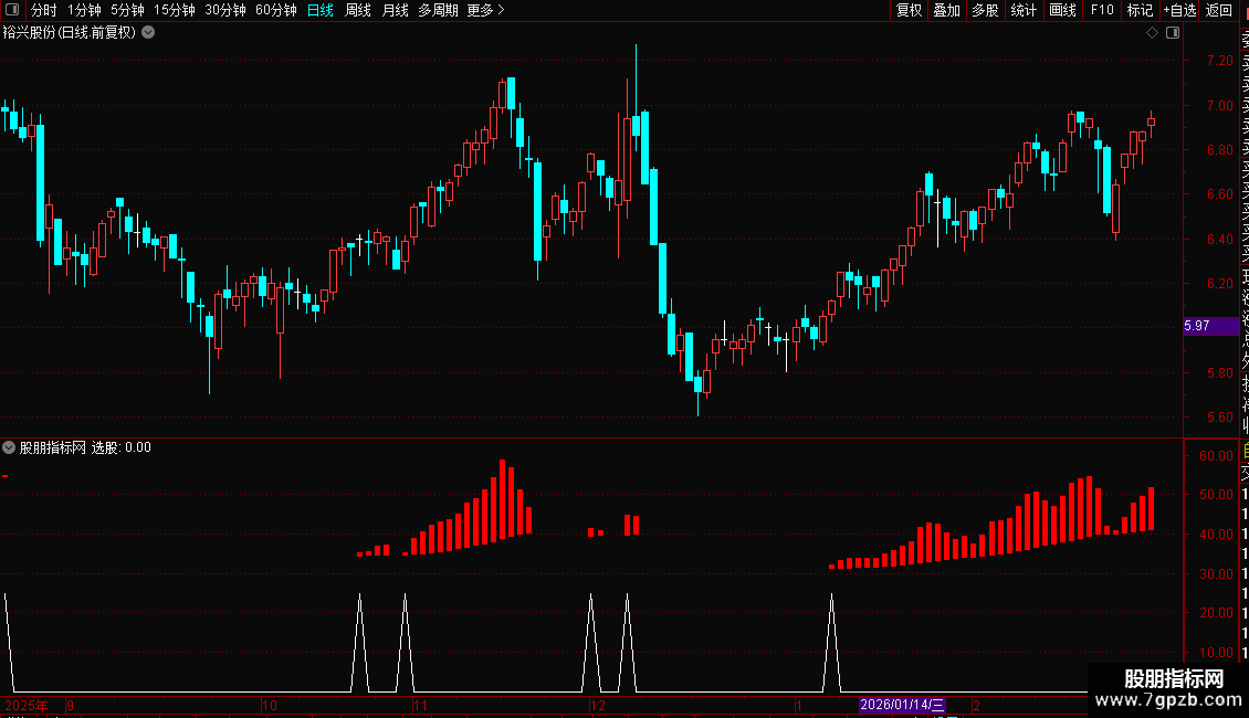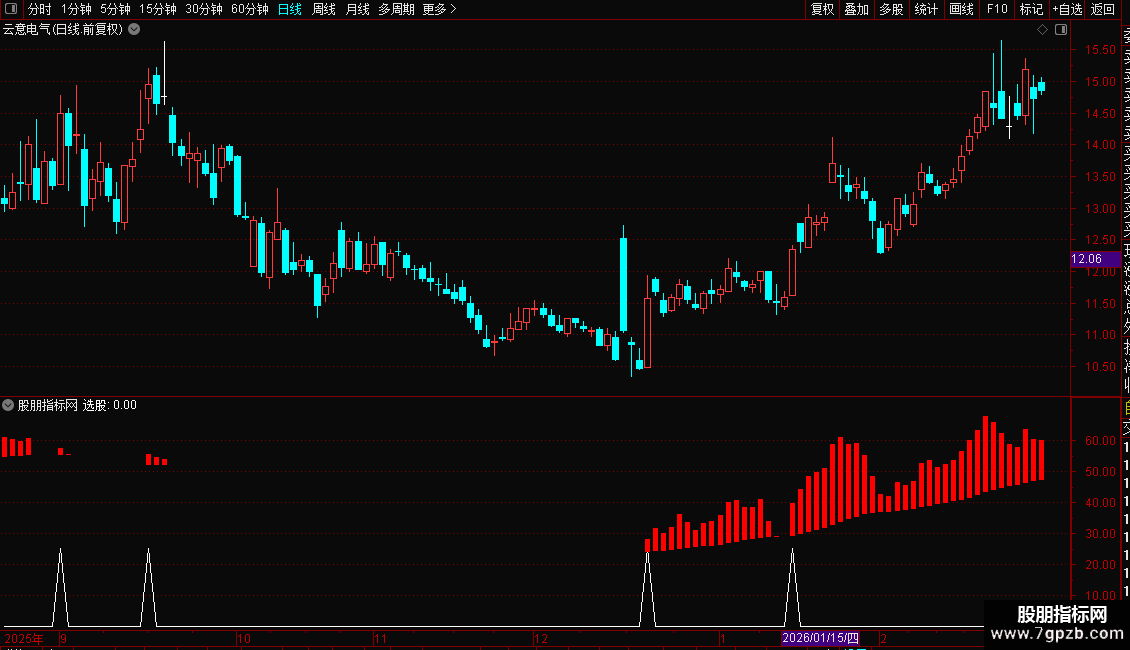 选股:(ZZLJJ>REF(ZZLJJ,1) AND REF(ZZLJJ,1)<REF(ZZLJJ,2))*25;
