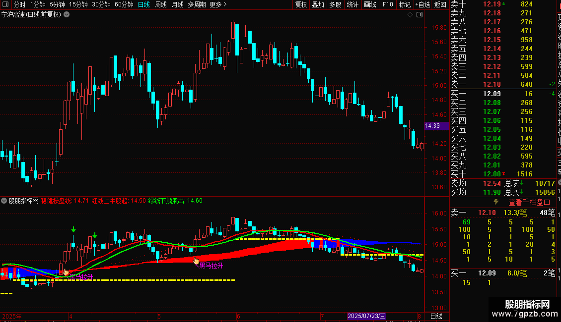 DRAWTEXT (拉升一号,L*0.97,'↖黑马拉升'),COLORFF00FF;