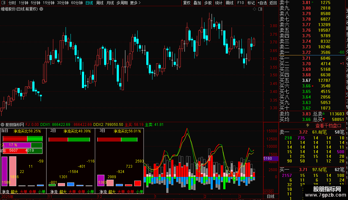 近3流入赋值:超B的3日累和+大B的3日累和+中B的3日累和+小B的3日累和的绝对值*1000/成交量(手)