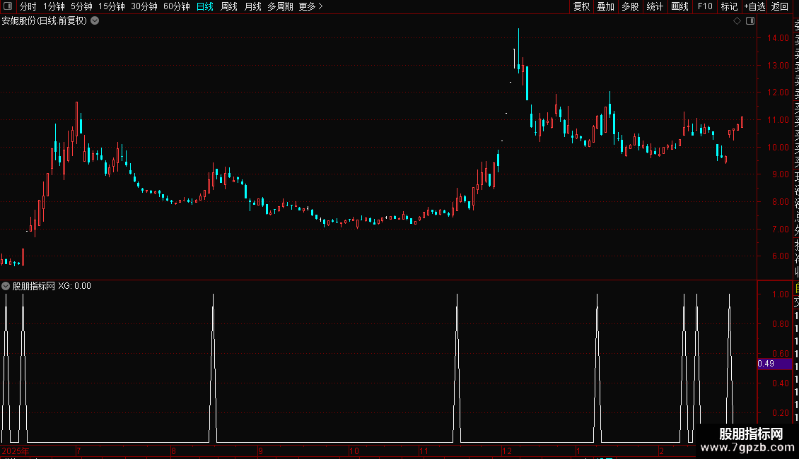 YD:=活跃度>LLV(活跃度,13)*1.2;