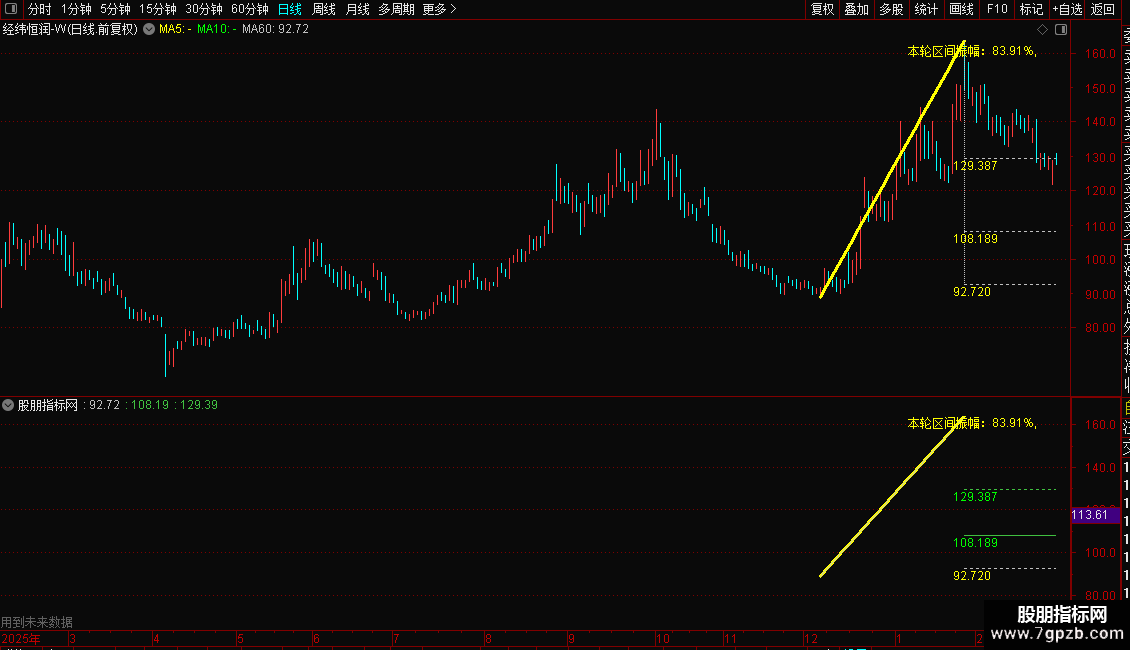 区间振幅表示上升(下降)趋势的振幅,方便您在所处趋势中观察手中个股上升 下降参考前面趋势。知道目前股价处于趋势的什么位置。