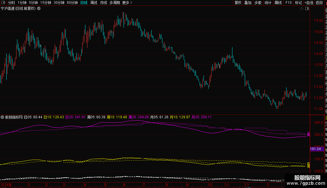 日线上实现跨周期显示“周均线”和“月均线”,不是市面上引用week和month函数的写法,手机通达信也可以使用。