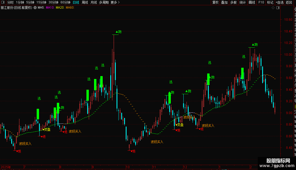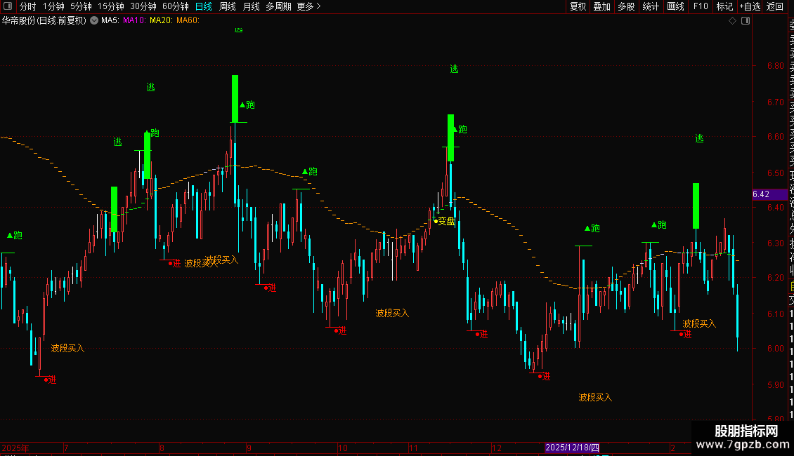 {DRAWTEXT(CLOSE>VAR2,CLOSE,'●短卖'),COLOR00FF00;}