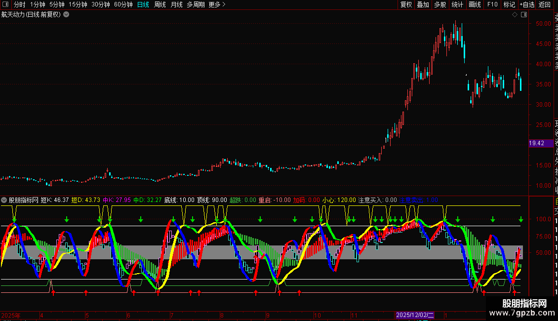加码:IF(CROSS(中J,REF(中J+0.01,1)) AND BDDD AND BETWEEN(中J,20,60),1,0),COLORRED,NODRAW;