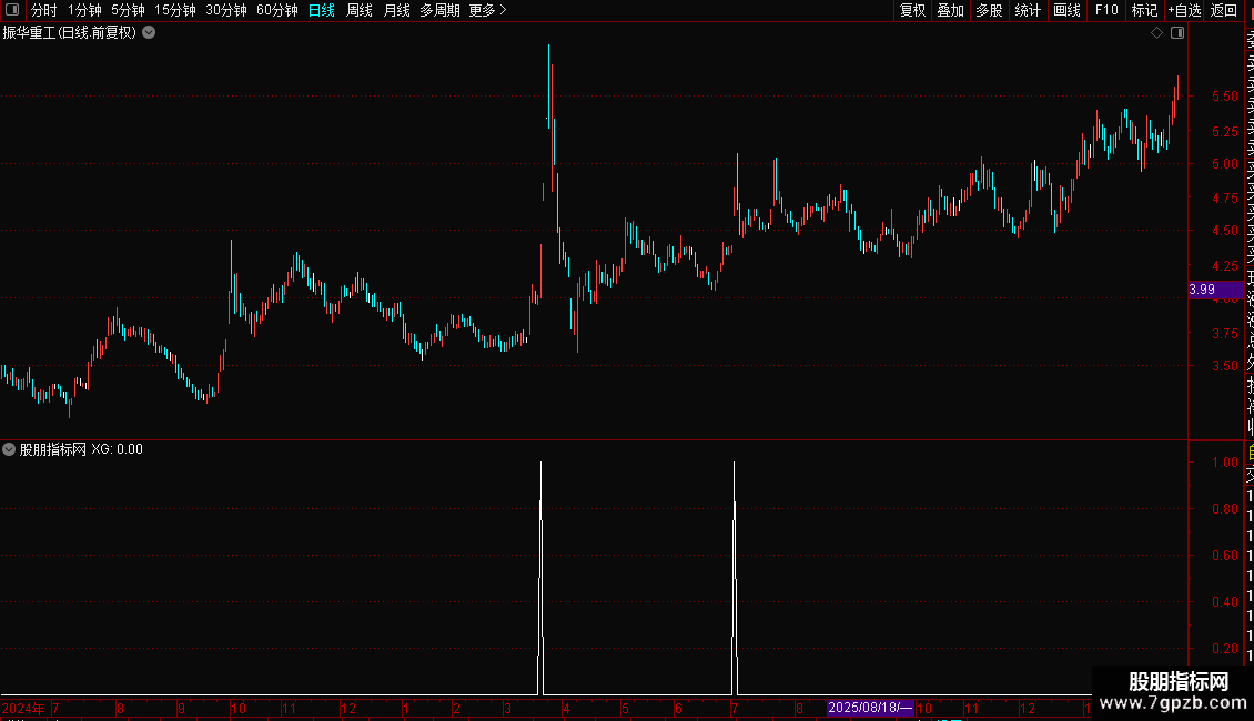 X_7:=CLOSE/REF(CLOSE,1)>1.048 AND CLOSE=HIGH AND BETWEEN(FORCAST(VOL,4),0.2*FORCAST(VOL,12),2.1*FORCAST(VOL,12));