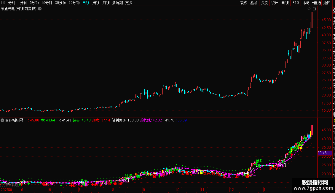 支撑:=REFDATE(V2,DATE),POINTDOT,LINETHICK3,COLORCC66FF;