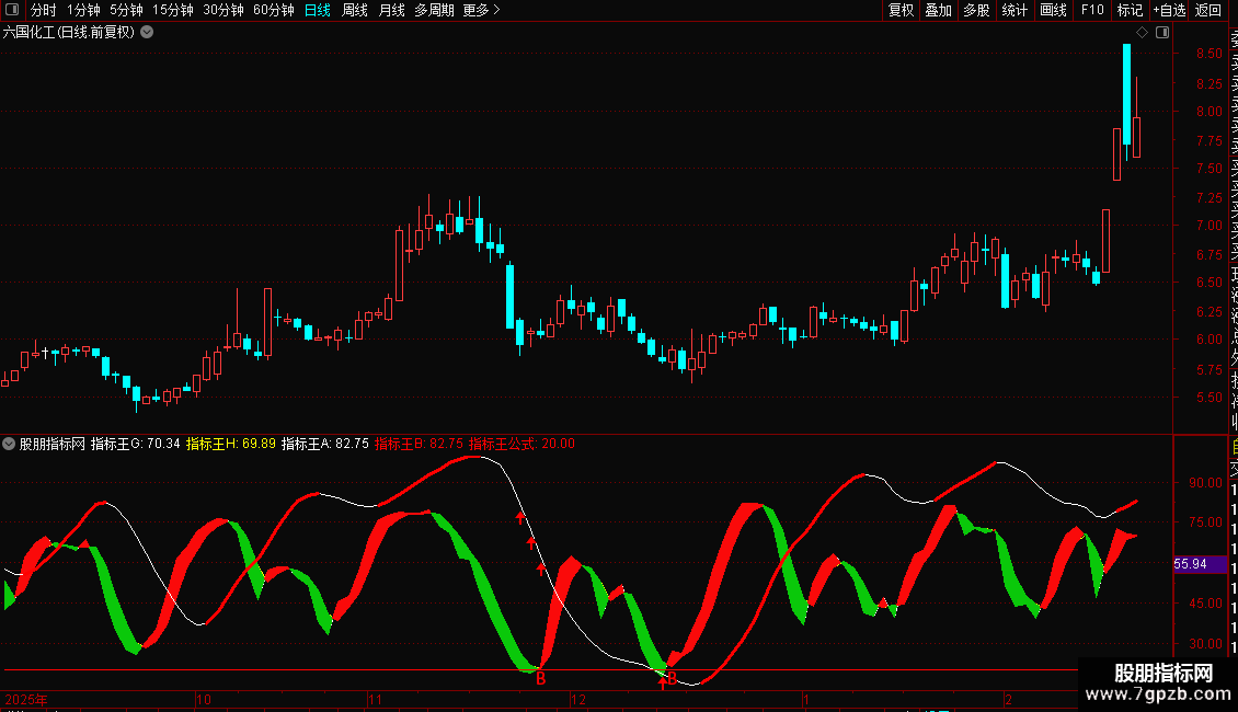 DRAWBAND(指标王G,RGB(250,10,10),指标王H,RGB(10,200,10));