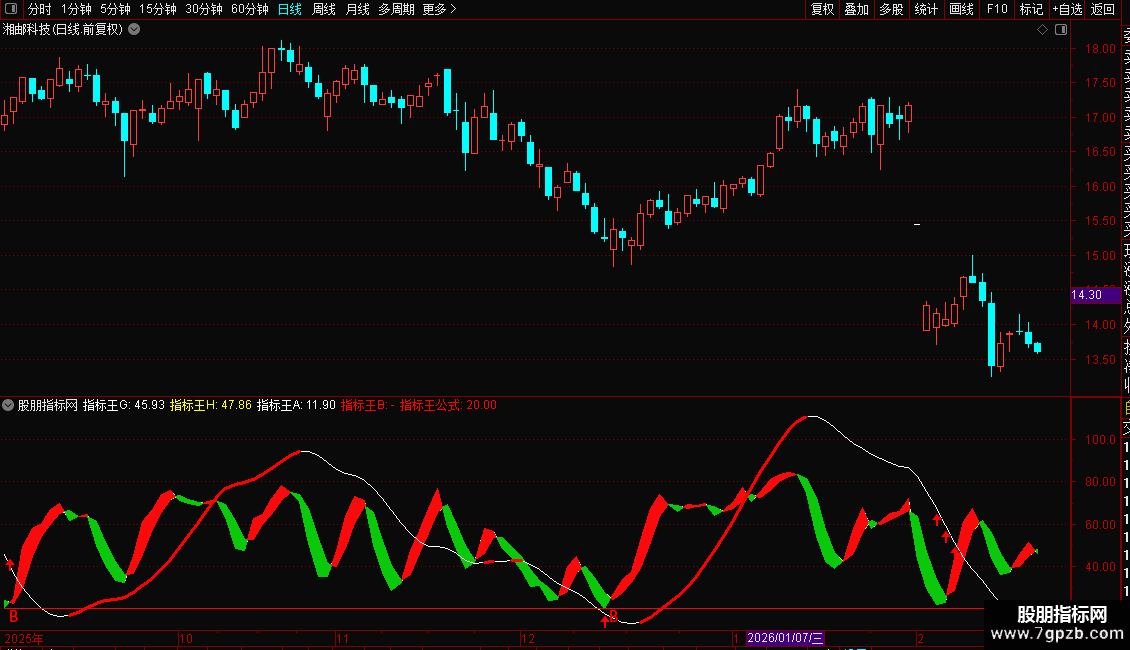 指标王E:=IF(指标王D>0,指标王D,指标王D),COLORFFFFFF,LINETHICK2;