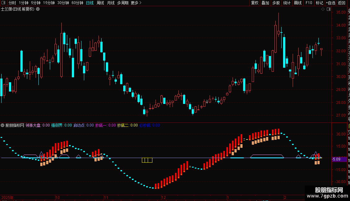 抄底:=EMA((VAR6-VAR7)/(VAR8-VAR7)*100,13)-50;