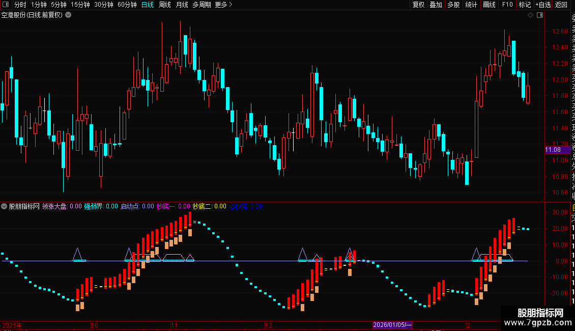 {STICKLINE(领涨大盘=4,抄底+6,金山-1,1.5,0),COLORFF99FF;}