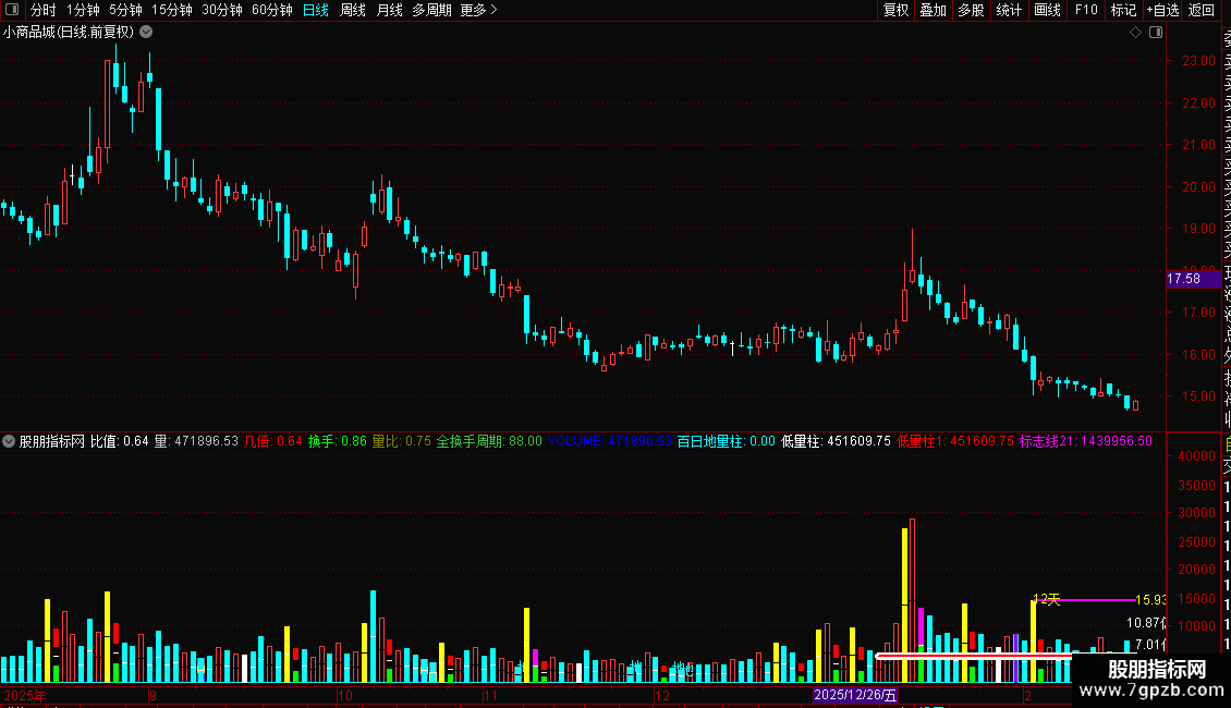 低量柱:IF(CURRBARSCOUNT<=CONST(REF(LLVBARS(VOL,30),1)+1)+1,CONST(REF(VOL,REF(LLVBARS(VOL,30),1)+1)),DRAWNULL),COLORWHITE,LINETHICK7;